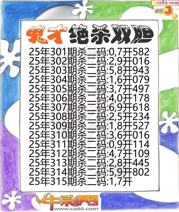 > 鬼才绝杀双胆315期体彩P3图谜
