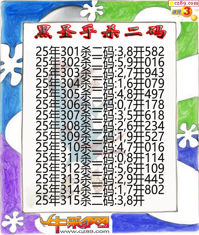 > 黑圣手杀二码315期体彩P3图谜